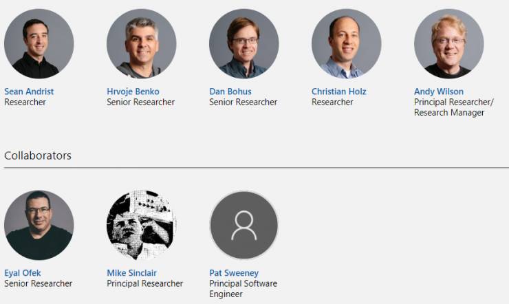 感知和交互组:感知和交互小组研究虚拟世界与我们居住的人和物体的物理世界之间的接口。他们的目标是通过传感技术、智能信号处理、新的交互模式和理解用户来丰富这一接口。他们的工作是建立在感知和交互的基础上来实现这一想法,他们也喜欢通过构建工作原型来实现想法。