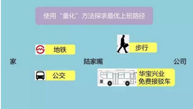 例如,某魔都金融民工,每日上班路线是这样的:乘地铁或者公交至陆家嘴,随后步行或者乘华宝兴业免费接驳车至公司楼下。哪条路线最近呢?