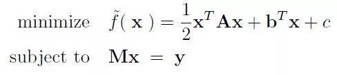 其中 A∈R^(d*d) 以及 M∈R^(p*d)。PGD 背后的思想是,消除等式约束 Mx = y(它定义了凸集 C),从而得到一个无约束的优化问题。首先,我们需要找到一个矩阵 F∈R^(d*(d-p)) 和用参数表示的仿射向量 x^d(因此为凸集),可行解集如下: