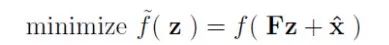 这是一个无约束问题其中变量 z∈R^(d-p)。通过该问题的解 z*,我们可以找到 f 的解为 x*=Fz*+x^。