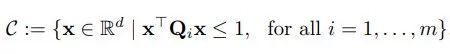 本文给出的例子是,当 C 被定义为以原点为中心的 m 个椭球的交点时,即