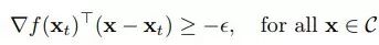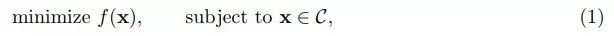 其中,f 是在一个凸集上平滑的非凸函数,x∈R^d,C 是一个封闭的凸集,而实数集上的 f:R^d 是 C 上的一个二次连续函数。