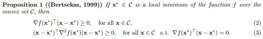 对于带约束的优化问题,局部最小值具有如下所示的特性:
