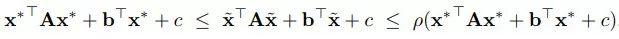 其中,A∈R^d 是一个对称矩阵,b∈R^d 是一个向量,而 c 是一个标量。在这里,假设有一个可行解 x*,和一个属于 (0,1] 常数因子 ρ,作者将问题的解定义如下: