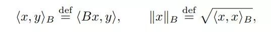 其中,S 是在每一次迭代独立于预先指定的分布绘制而来,B 是一个正定矩阵。更进一步而言,B 被用于定义 B 的内积和引导出如下 N-norm: