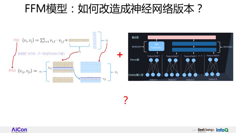 首先我抛给大家一个问题:刚才我们讲了,FFM 模型有它的对应版本,是 DeepFM 模型,那么问题来了:能不能设计一个 DeepFFM 模型神经网络版的?答案肯定是可以的。