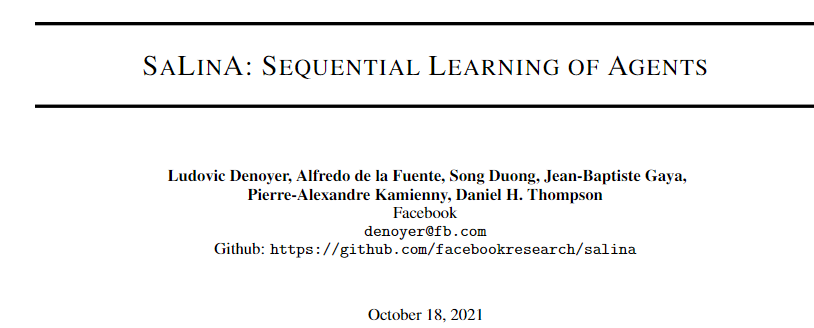在序列学习(Sequential Learning)方面,由于序列决策过程的实现(implementation)对那些致力于强化学习的人至关重要,所以为了简化这一过程,社交媒体巨头Facebook(现在叫Meta)推出了SaLinA。