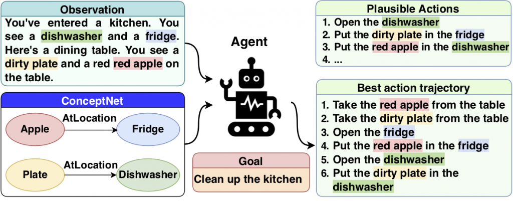 IBM 也在2021年加入了强化学习领域的战场。它发布了一个基于文本的游戏环境TextWorld Commonse(TWC),以解决强化学习注入常识的问题。该方法可以用于训练和评估具有特定常识的强化学习agent,这些知识涉及物体、属性和affordances,主要通过引入几个基线RL agent来解决序列决策问题。