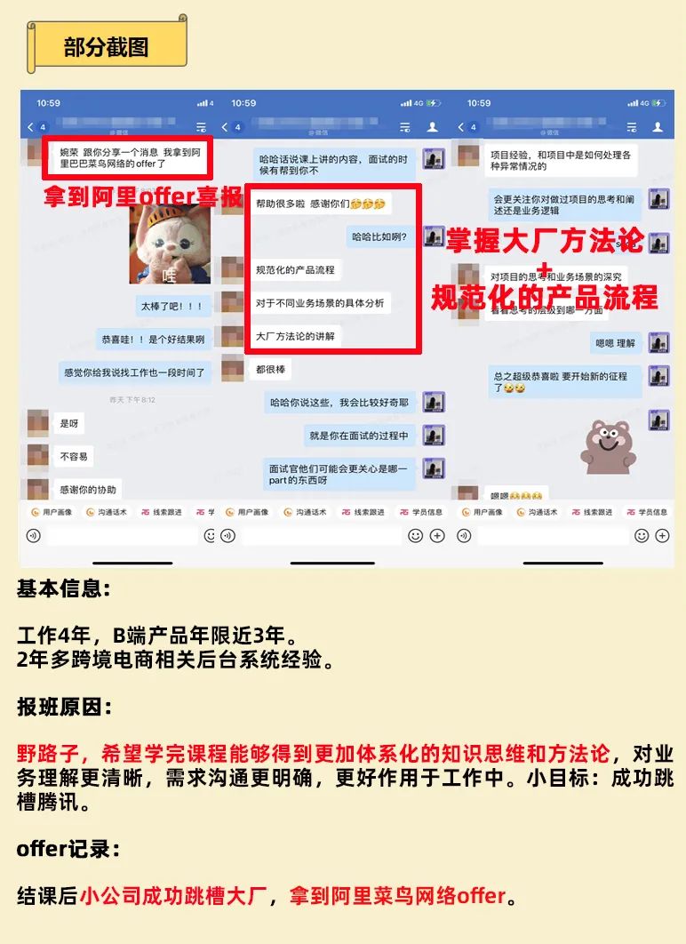 相信你报名后,经过实战式学习,能有更加深入的理解,也能像往期同学一样,将这些方法迁移运用到B端产品工作和求职中,成功跳槽到心仪的公司。