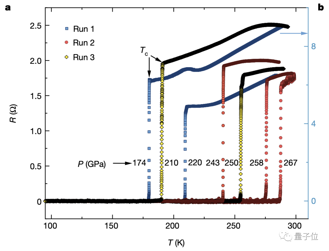 当到达到267万个大气压时,只需把样品降低至15°C,就能看到电阻消失。