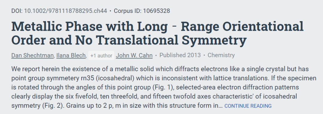 准晶体:Dan Shechtman的一种长程有序且不具备平移对称性的金属相