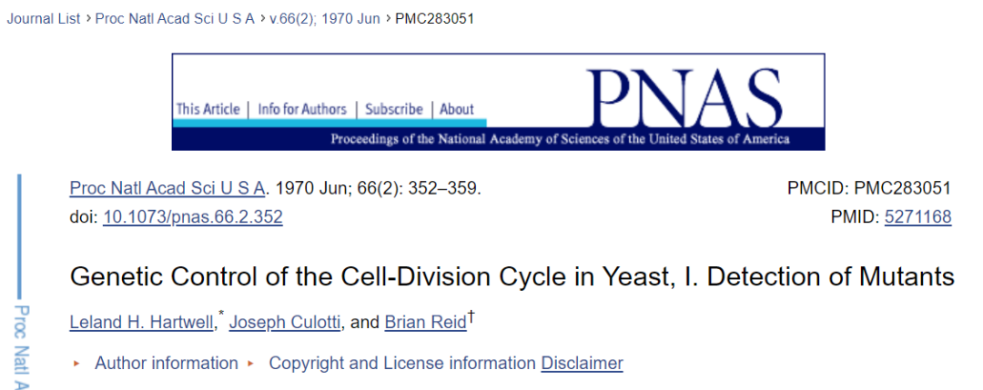 细胞分裂周期:Hartwell LH的酵母细胞分裂周期的遗传控制