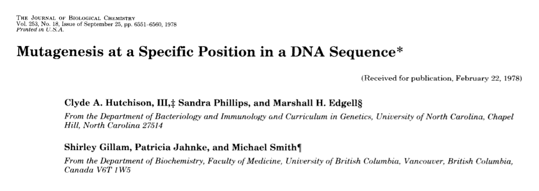 定点诱变:Smith, M的DNA序列中特定位置的诱变