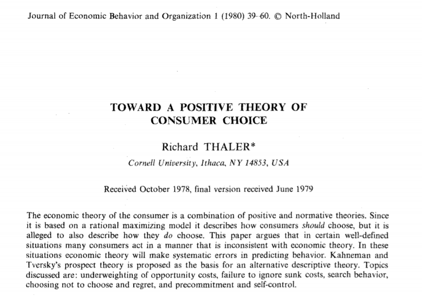 标准经济理论描述:Richard Thaler的建立积极的消费者选择理论