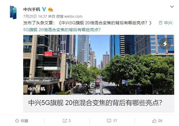 今日下午,我国的首款5G手机——华为Mate 20 X 5G版就将正式亮相了,这也预示着我国正式进入了5G商用的元年。而除了该机之外,中兴的首款5G旗舰Axon 10 Pro 5G版也与此前抢先开启预约,有望与华为Mate 20 X 5G版争夺5G手机的首发上市。现在有最新消息,中兴手机官微高调晒出了该机的20倍变焦样张,效果极其震撼。