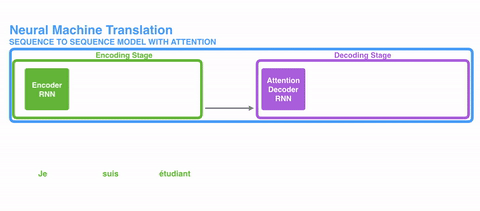 上图展示了一个用于神经机器翻译的序列到序列(seq2seq)模型。RNN编码器负责将输入序列编码成固定大小的向量,也就是整个句子的“表征”,然后把这个表征传递给RNN解码器。
