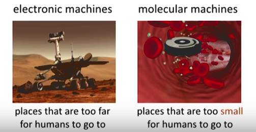 为什么研究者要发明纳米机器人?“这就好象机器人被送到火星等遥远的、人类不能及的地方,我们希望有一天可将分子机器人送到微小而人类不能及的地方,比如说血液里,”钱璐璐解释道,“在这项研究中,我们的目的是设计和制造一个可以在纳米世界中,执行复杂任务的分子机器人,它的任务就是对分子进行分类。”