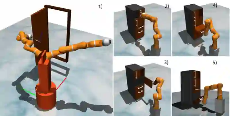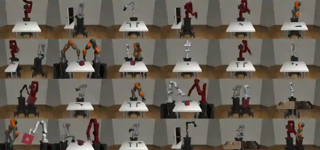 所提出的方法可以在模拟中学习各种3D操作技能和开门技能(通常被认为是在机器人训练中比较复杂的任务),而无需手动设计行为表示。