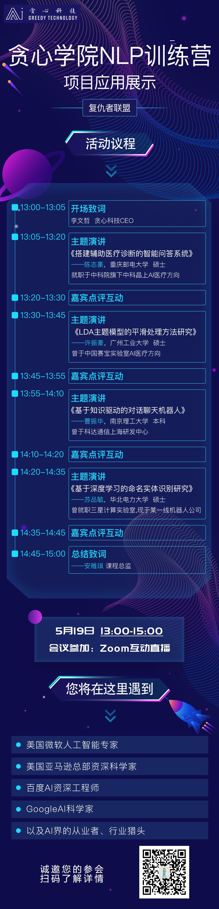 我确定了我们的魔鬼训练营没有误人子弟,我们的课程真的帮助到大家有人实质的技能提升或帮助大家拿到offer。今年五月,大魔头携带着他的第四期《NLP自然语言处理集中营》再度回归了。