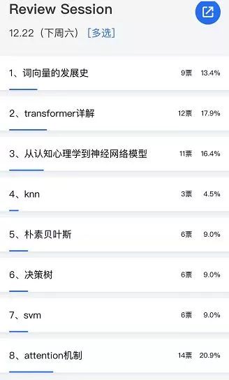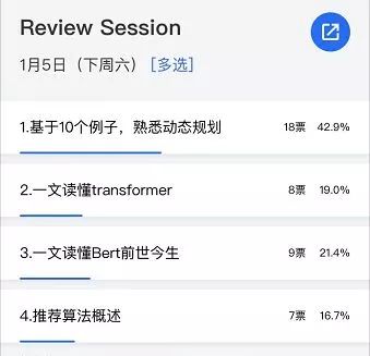 每周一次的Review Session, 老师提前一周给出几个备选主题,由学生进行投票选择最心仪的主题,每周三次。