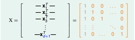 矩阵中,每一行代表一个inputs,每个inputs是d+1维的,共有d+1个inputs。这里构造的X很明显是可逆的。
