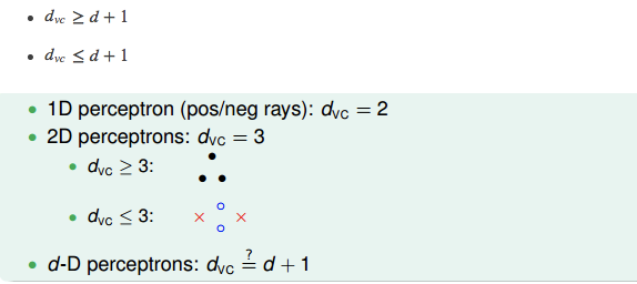 在d维里,我们只要找到某一类的d+1个inputs可以被shatter的话,那么必然得到≥d+1。