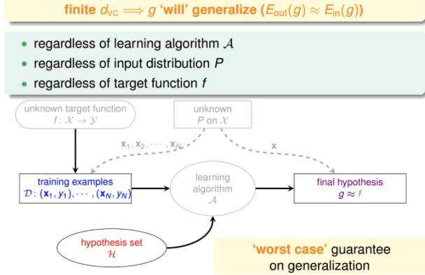 根据VC Bound理论,当N足够大的时候,如果找到一个g,使