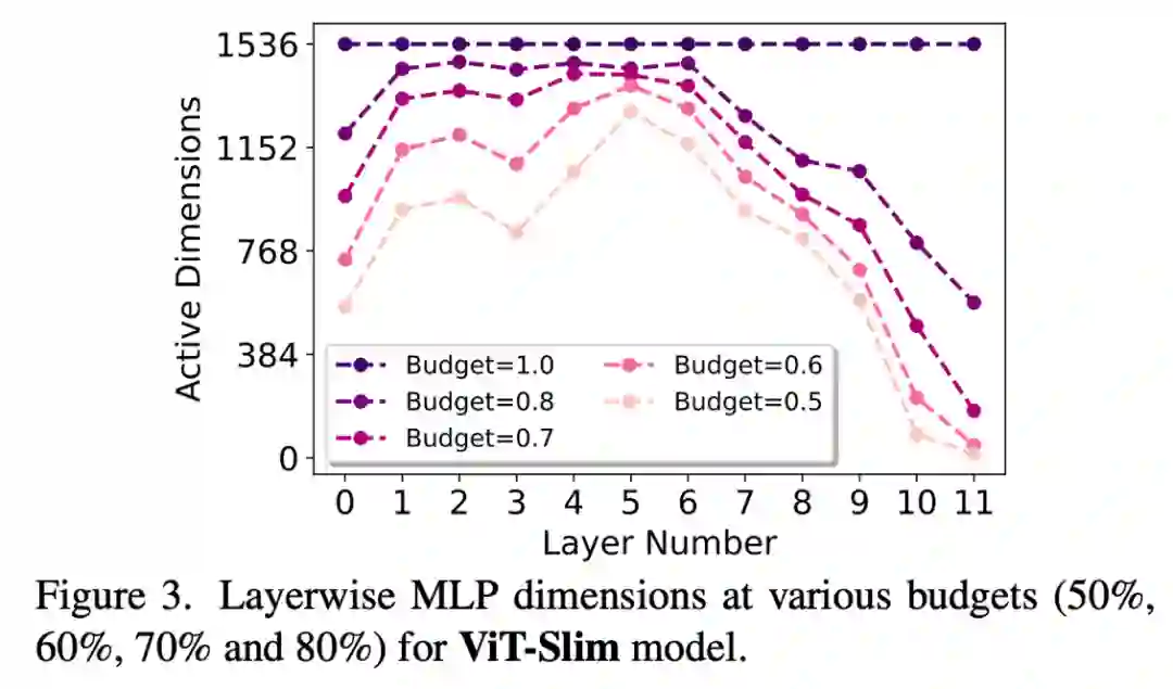 可以看到搜索得到的 MLP 结构同样呈现中间大,两边小的现象,这也是一个非常有意思的地方。