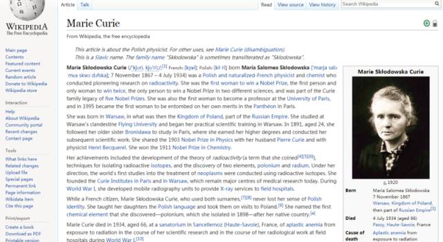 维基百科中“居里夫人”词条