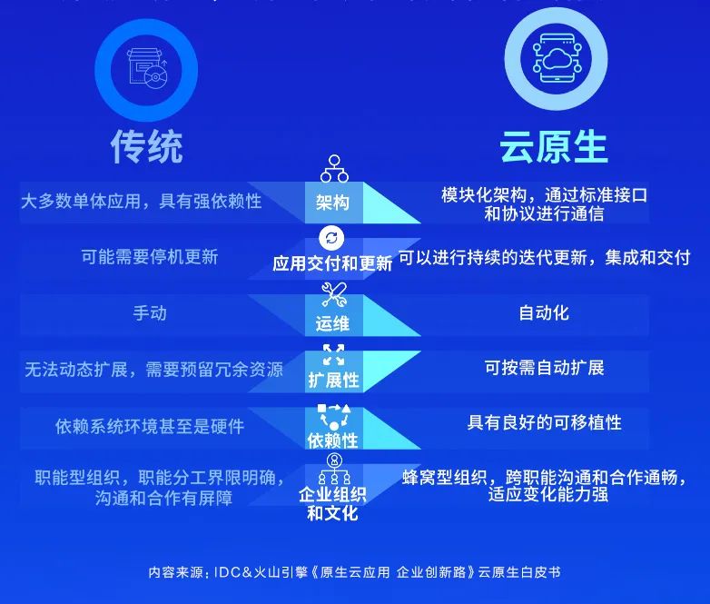 几年前,随着“云原生吞噬一切”的言论,云原生在技术界引发了热烈讨论。几年过去了,我们能够看到,云原生正在从对 IT 基础设施和云资源的弹性灵活调度使用,进一步普及到全行业企业的敏捷开发与业务创新中。3 月 21 日,国际权威分析机构 IDC 联手字节跳动旗下的企业级技术服务平台火山引擎,重磅发布了云原生白皮书《原生云应用 企业创新路》(以下简称“白皮书”),对于中国企业数字化转型与云原生技术应用,给出了重要的市场数据、预测与建议。