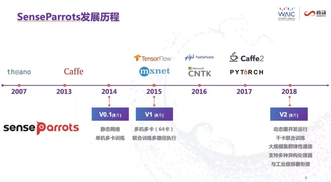 那时候它已经具备了多机多卡联合训练和多路径执行的领先业界的特性。