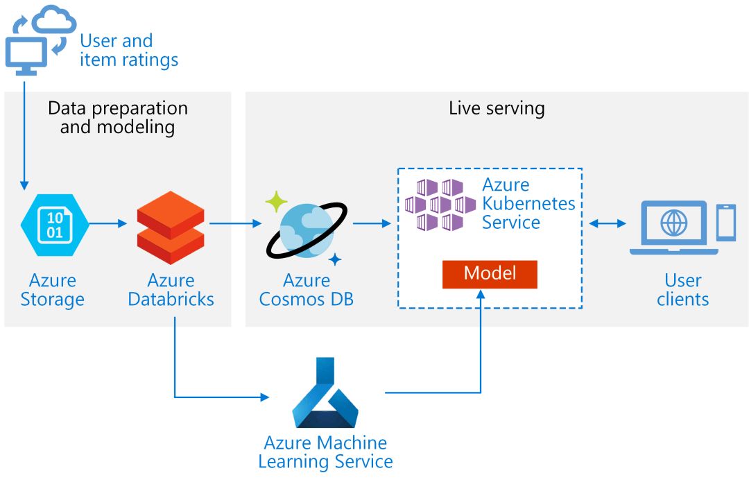 对于绝大多数推荐系统的开发和研究人员来说,完整搭建生产环境耗时耗力,为此,Azure云平台提供了方便高效的工具和服务来搭建完整系统。这部分教程详解了如何使用基于Azure的大数据处理平台(如Azure Databricks)、Azure机器学习服务(Azure Machine Learning Services)和Azure全球分布式数据库(Azure Cosmos DB)等工具开发企业级规模的可扩展推荐系统。