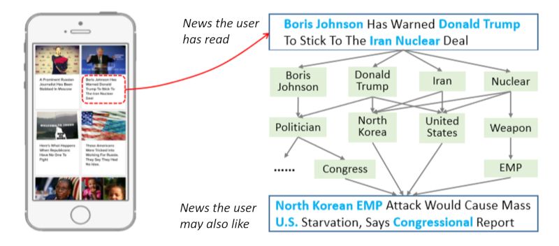 图1 Deep Knowledge-aware Network 算法在新闻推荐中的应用