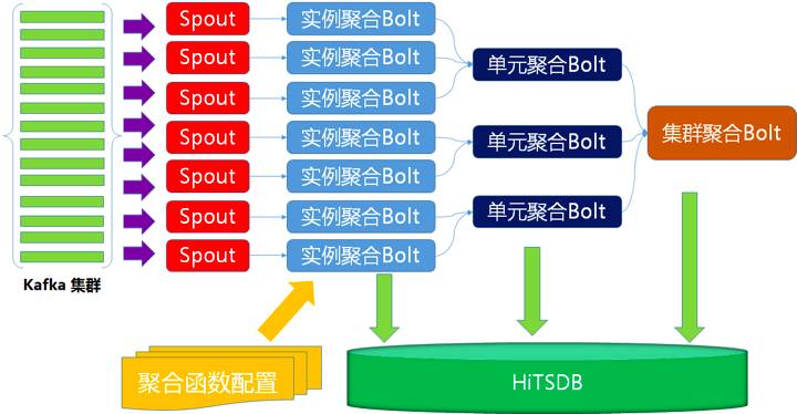 实时计算引擎实现了实例、单元、集群三个维度逐级聚合,每一级聚合Bolt各自写入HiTSDB。流式计算平台的选择是自由,目前我们的程序运行在JStorm计算平台上,JStorm让我们具备天生的高可用能力。