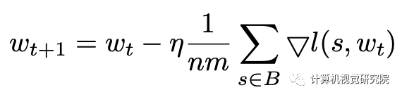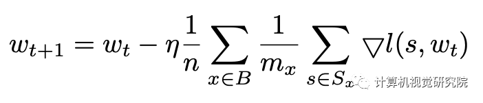 为了简化,假设mx对于小批量B中的每个图像x是相同的。关注个体训练样本s,上式可以改写为: