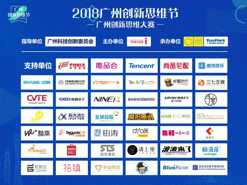 感谢活动指导单位广州科技创新委员会,主办方广州创新企业联盟,承办单位广州启迪中海科技园及南方网、中国报道、广州电台、羊城晚报、新快报、央广网、南方日报、腾讯新闻、广州交通电台、广东科技报、中国报道网、广州电视综合频道、澳门商报、广州日报、界面广东等媒体对本次广州创新思维节的大力支持。