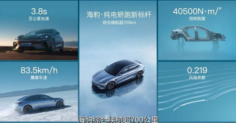海豹的四款车型均标配全景天幕,主动进气格栅也是全系标配,风阻系数Cd值可以低至 0.219。对于内饰交互配置方面,比亚迪海豹配备了 10.25 英寸全液晶仪表和 15.6 英寸自适应旋转中控面板,内置最新版本的 DiLink 生态系统,可支持 5G 网络连接。在影音娱乐方面,比亚迪海豹提供 12 扬声器丹拿品牌音响。
