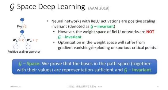 有了 g-Space 之后,我们就可以在其中计算梯度,同时也可以在 g-Space 里计算距离。有了这个距离之后,我们还可以在 g-Space 里定义一些正则项,防止神经网络过拟合。
