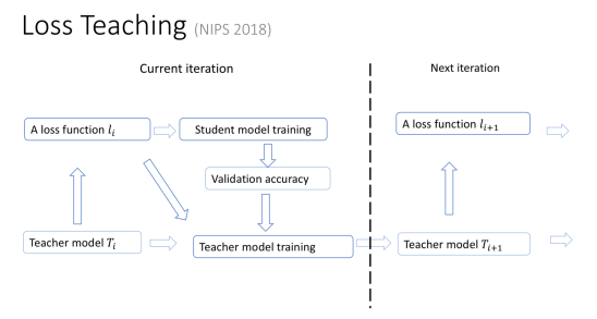 同样,teacher model也可以动态调整原来student model 所要优化的目标。 比如,我们的学习目标可以从简到难,最开始的时候,一个简单的学习目标会让我们很快学到一些东西,但是这个学习目标可能和我们最终问题的评价准则相差很远。我们不断把简单平滑的目标,向着问题评价的复杂的非连续函数逼近,就会引导 student model 不断提高自己的能力,最后实现很好的学习效果。