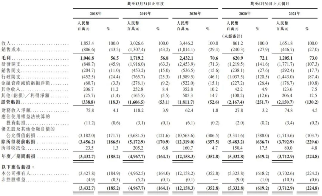 从商汤的招股书中我们可以看到,该公司 2020 年营收 34.5 亿元,2021 年上半年营收为 16.5 亿元。同期亏损分别为 8.8 亿元和 7.3 亿元。不过截至今年上半年,商汤科技的现金及现金等价物为 89.26 亿元,资金较为充裕。