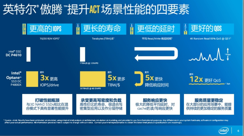 傲腾之所以可以提升 ACT 这样的解决方案,加速缓存、分层等这些场景应用,那么主要得益于以下这四个要素。
