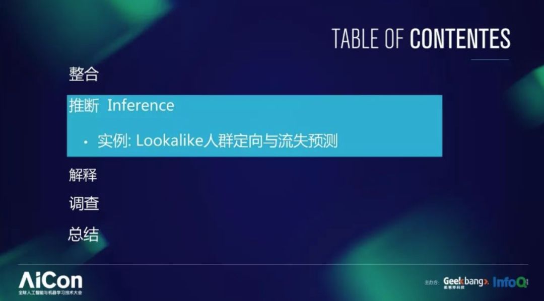 对数据整合和编码后,下一步我们要使用统计和机器学习的方法去求解问题也就是 inference ,这里我们来说 lookalike 这个模型。