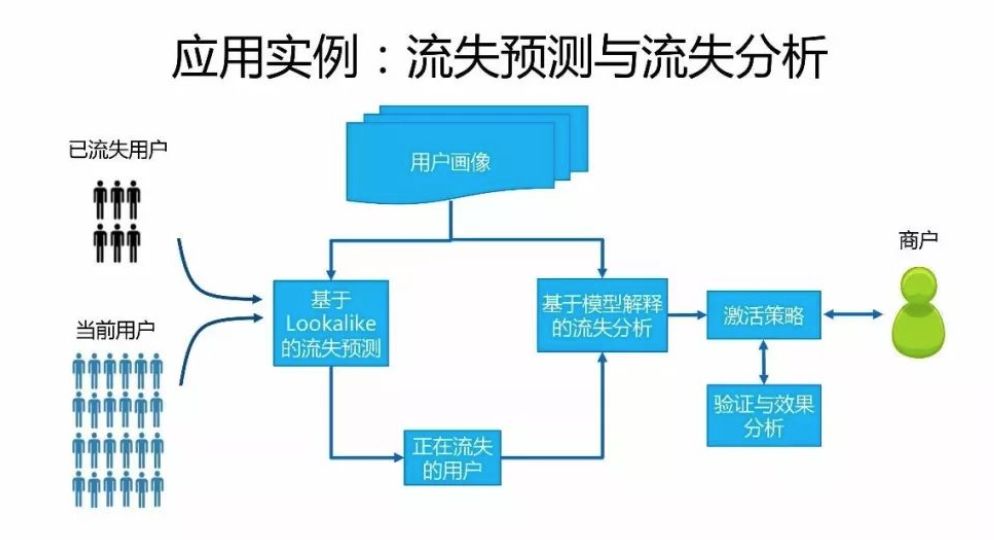 我们看一下 lookalike 应用的一个具体实例,lookalike 被广泛的应用于精准拉新。但我觉得相对于拉新降低用户流失率更重要,因为新用户可以通过广告或地推等方式花钱买到,但已有用户一旦流失就很难挽回,所以必须在流失之前采取措施。