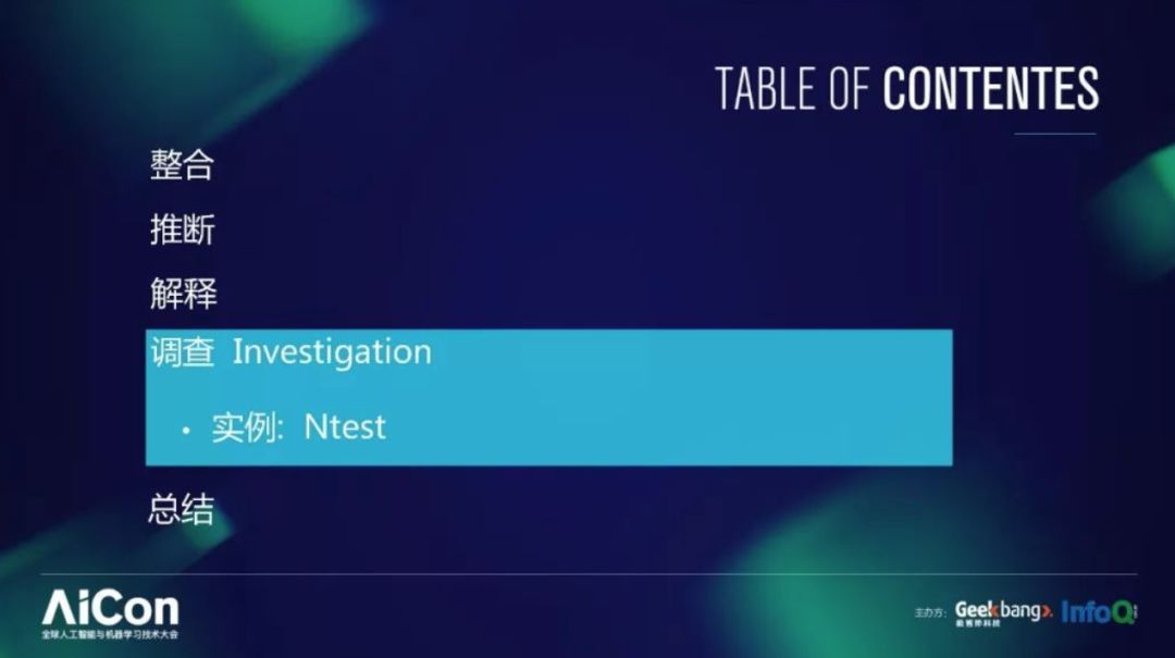 解释之后,该发现的问题找到原因,那么我们就要结合人工的知识和实际环境制定策略,并用自动化测试的方法去验证效果,这步我们叫 investigation ,这一步其实最复杂,因为要结合人工知识而且在各个业务场景中验证方法都不一样,由于时间关系我这里介绍一种通用的方法 ABtest ,ABtest 无论是在传统行业还是在互联网公司都已经被使用了很多年了,是一个非常有效的产品测试方法。