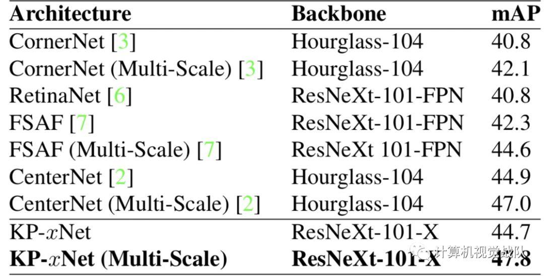 由于目标大小在其指定的层内几乎是均匀的,因此与其他架构(例如FPN)相比,宽度和高度的动态范围更小。因此,回归目标的高度和宽度将变得更容易优化问题。最后Matrix Nets可用作任何目标检测架构、基于锚或基于关键点、one-shot或two-shots检测器。