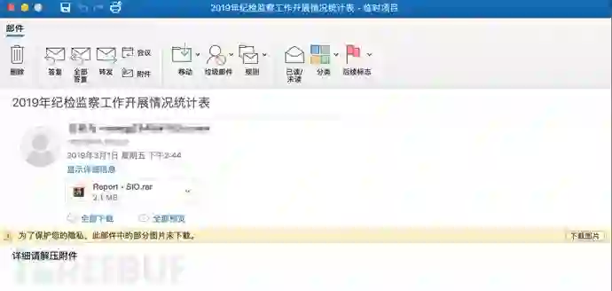 恶意文件投递的方式依然是最常用的鱼叉攻击的方式,钓鱼关键字包括”干部培训”,”绩效”,”工作方向”,”纪检监察”等,相关的邮件如下: