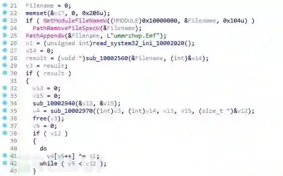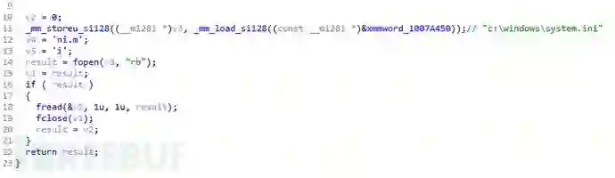 该样本会读取c:\windows\system32.ini文件,读取1字节作为key: