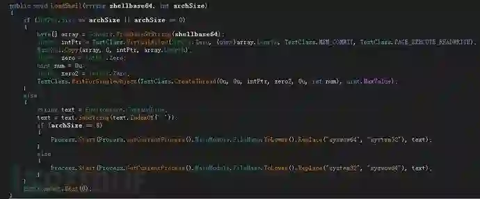 经过base64解密及范序列化后得到两个对象loader和playload,并在内存中调用loader的LoadShell方法。