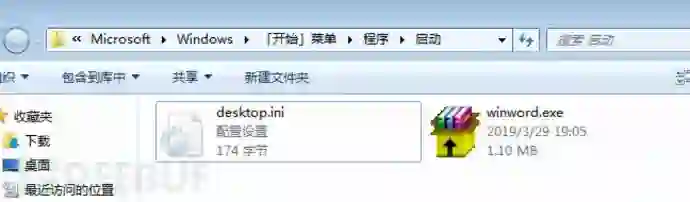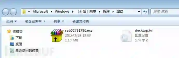 除了解压出压缩的文件后,还会在启动目录(C:\Users\Administrator\AppData\Roaming\Microsoft\Windows\StartMenu\Programs\Startup)释放一个自解压文件: