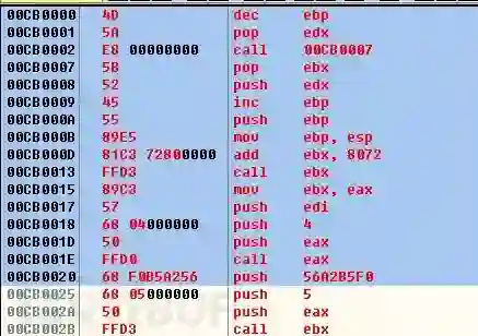 下载的木马是一个直接可当作代码执行的shellcode,下载后直接在内存中执行: